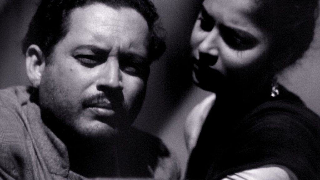 Later, Vijay is invited to Mr. Ghosh’s home as a servant for a party after his writing ability is indirectly thrashed by his demeaning boss. At the event, emotions explode after he finds out that Meena is married to his boss. A series of tracking shots and close-ups are cleverly utilized to underscore Meena’s feelings, and her husband’s realization that she knows Vijay.