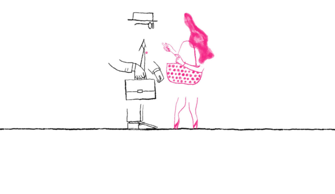Once Upon a Line visits the mundane of daily routine, and how that can become blotchy with the addition of human attraction. Many of us ought to be extremely familiar with both. A welcome, exhilarating distraction from the norm when our protagonist chap bumps into the woman in pink.